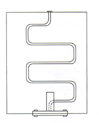 Ⅱ、蒸氣管伴熱: 蒸氣加熱保溫箱,伴熱管是用金屬管制成S型結構.箱體上下采用焊接式穿板接頭與伴熱管焊接而成,伴熱管安裝在箱內為上進下出,通過蒸氣在管腔內的循環而達到加熱目的,伴熱管材料規格分為兩種,即φ8×1紫銅管;φ14×2無縫鋼管(碳鋼)。外形美觀,其結構見圖。